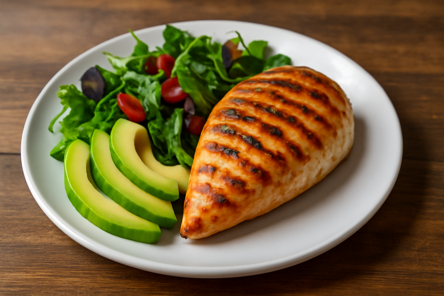 아보카도 반 개 슬라이스하고, 방울토마토, 오이, 양상추 준비해서 플레이팅하면 완성. 드레싱은 올리브오일 + 레몬즙 + 발사믹 식초 조합이 최고더라! 상큼하면서도 고소한 맛이 일품이야 🎉