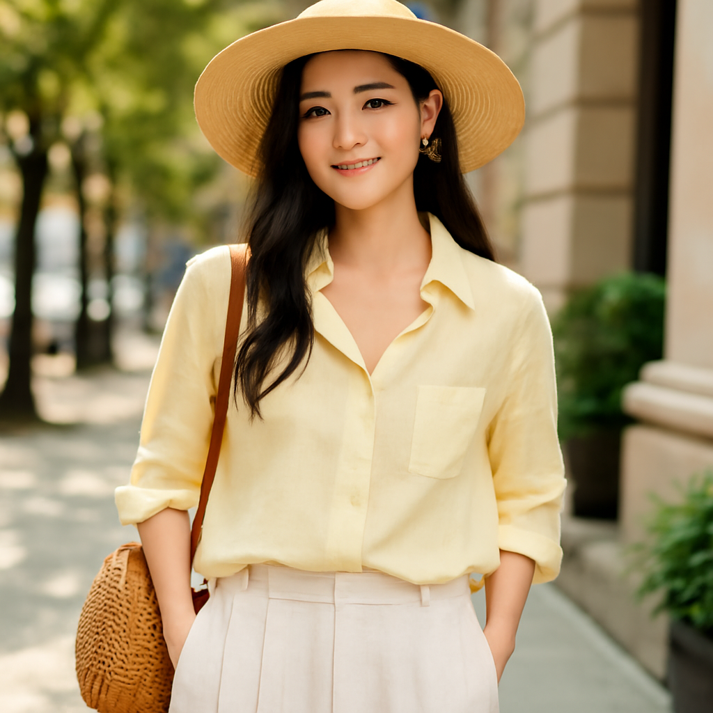리넨 셔츠, 와이드 팬츠, 원피스 등 다양한 아이템으로 만나볼 수 있는데요. 구김이 잘 가는 특성이 오히려 내추럴한 멋을 더해준답니다. 요즘은 구김이 덜 가는 리넨 혼방 소재도 많이 나와서 관리도 편해졌어요 ✨