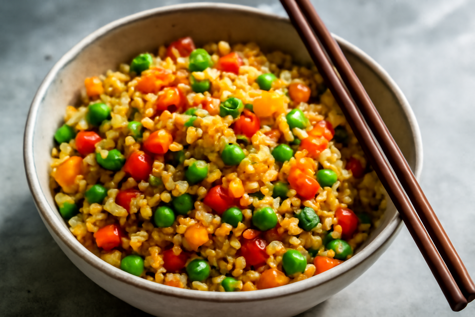 여기에 달걀이랑 당근, 완두콩 넣고 볶으니까 진짜 볶음밥 같은 비주얼이 나오더라! 🍳