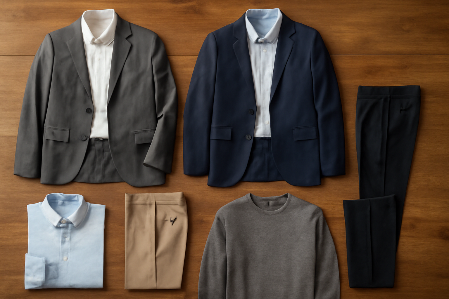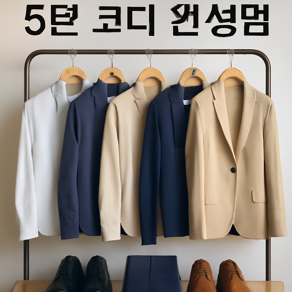 기본 5가지 아이템으로 15가지 조합 완성 가능. 매일 5분 내 코디 완료하고 출근 준비 시간 단축하세요.